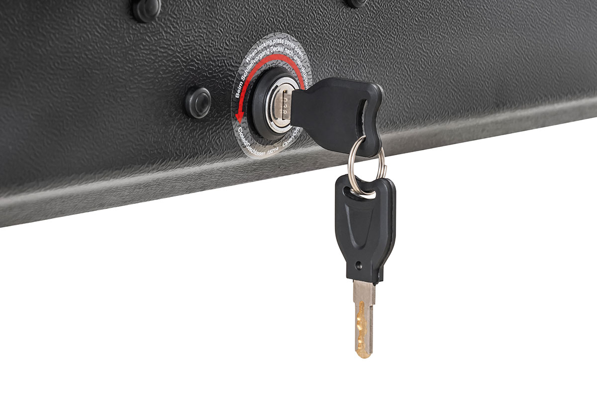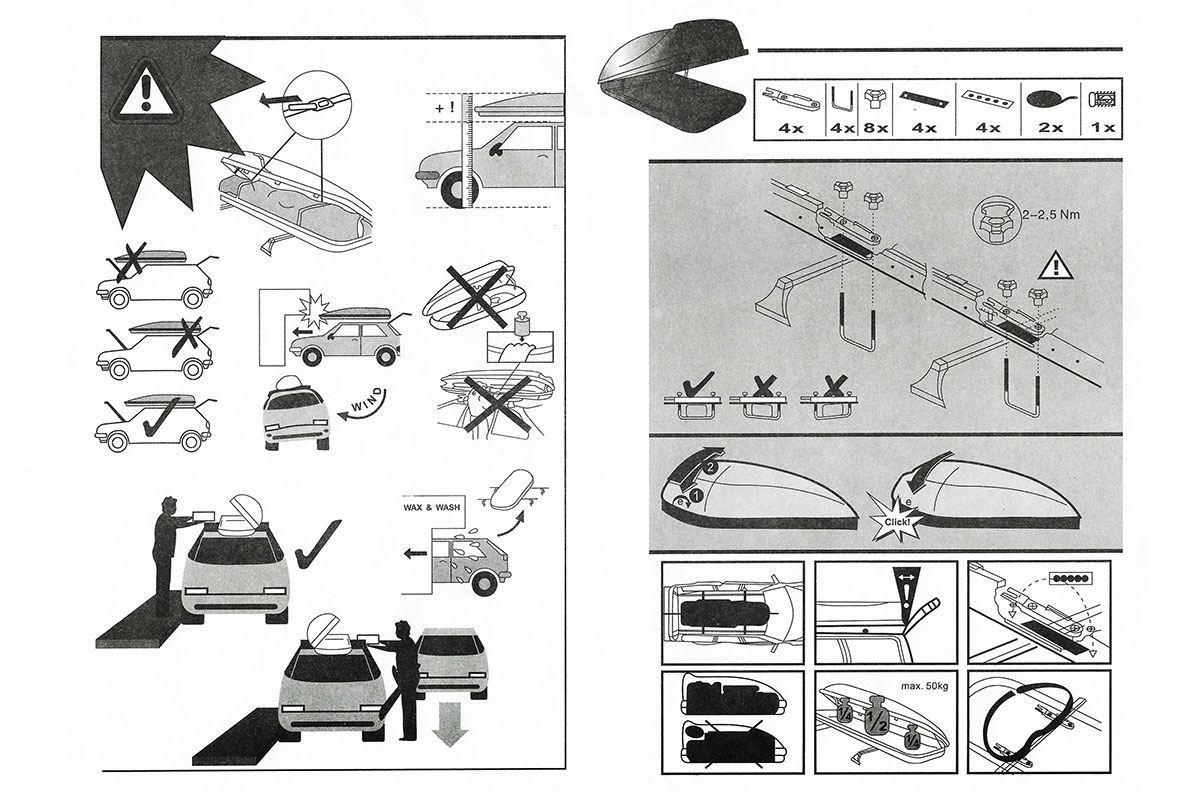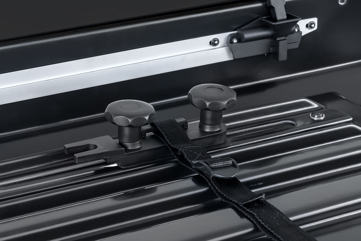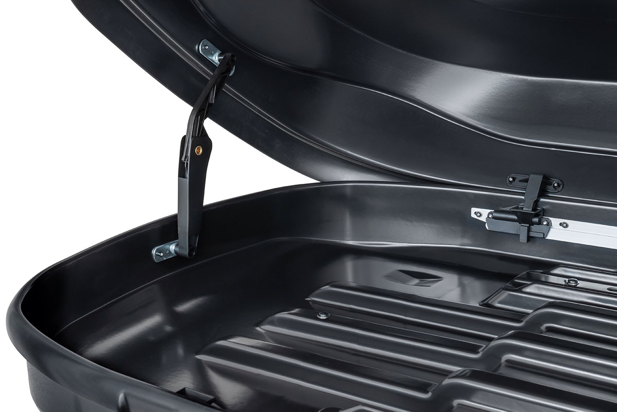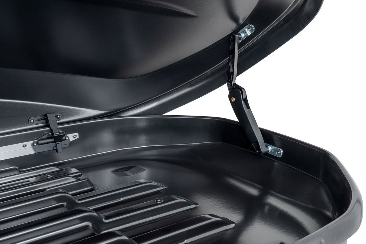 Простая и надёжная система фиксации обеспечивает крепление бокса к поперечинам автомобиля. Просцесс снятия и установки быстр и удобен, и не требует специальных навыков или инструментов. Для обеспечения сохранности багажа во время парковки или ночной стоянки бокс снабжен запираемыми замками.