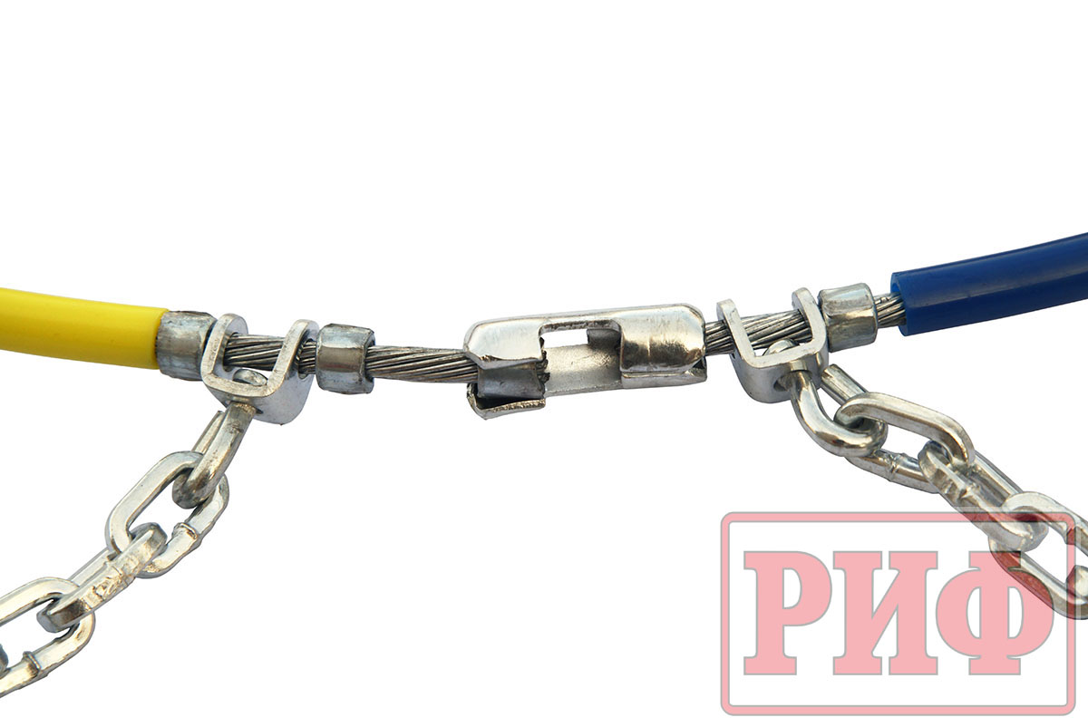 Материал цепи - высокопрочная, цементированная сталь с цинковым покрытием