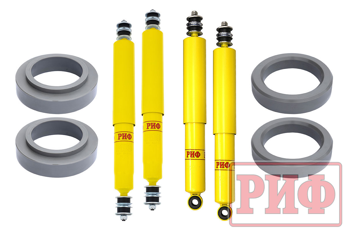 Все компоненты лифт-комплектов РИФ разработаны специально для эксплуатации внедорожника в тяжелых условиях на различных дорожных покрытиях.