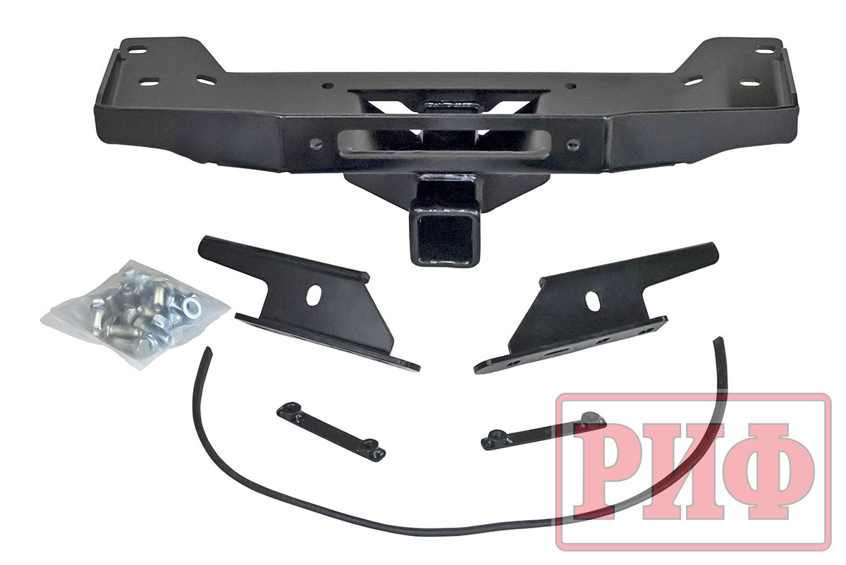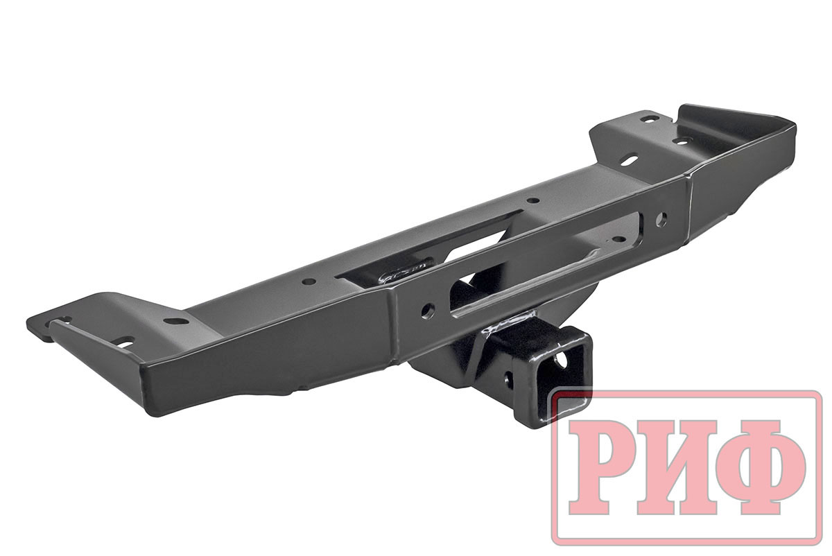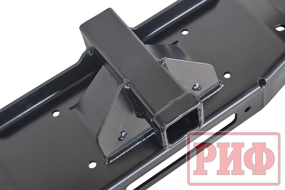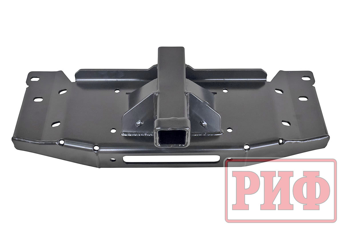 Это новый вариант площадки для лебедки, совмещенный с квадратом под фаркоп. Такой вариант площадки пожет быть полезен тем, кто съезжать с асфальта хочет, а ставить силовой бампер не желает. С данным устройством, скрытым в штатном бампере, можно пользоваться и лебедкой и хай-джеком, поскольку для подъема хай-джеком у нас в ассортименте есть специальная балка, которая как раз и крепится в квадратный фаркопный разъем. Ну а тем, кто имеет в хозяйстве большой прицеп, будет намного удобнее парковать его (особенно груженый), поставив шар фаркопа спереди.