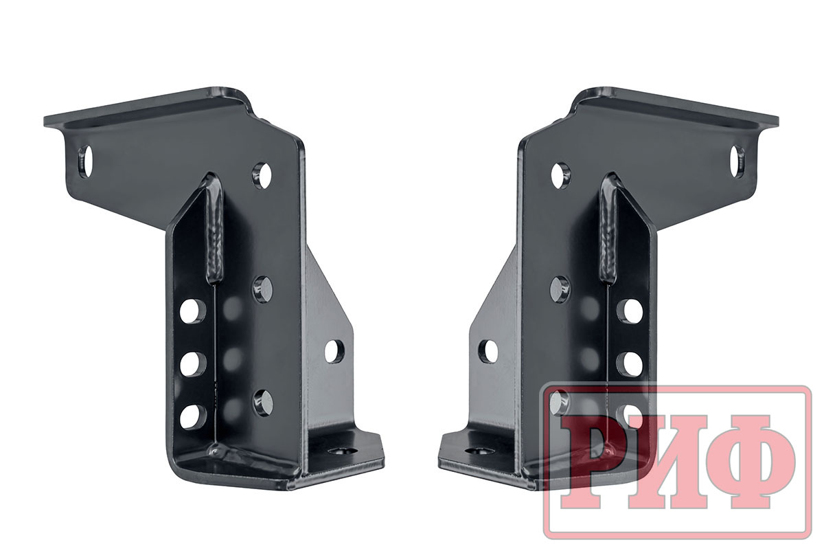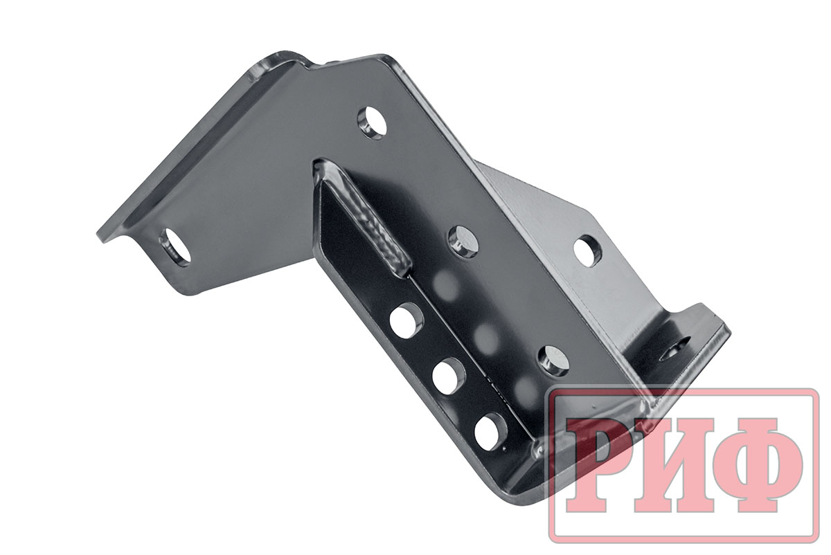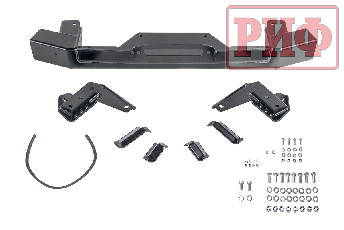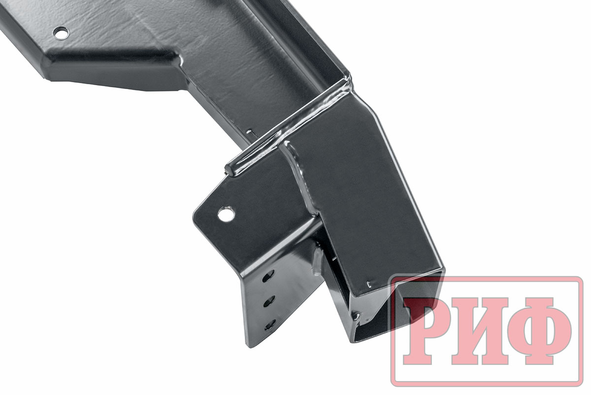 Площадка РИФ под лебедку в штатный бампер Toyota Land Cruiser Prado 120 отличается большим запасом прочности и рассчитана на установку лебедки с тяговым усилием до 5400 кг. Площадка имеет в своей конструкции интегрированный защитный брус, заменяющий штатный, который приходится демонтировать при установке площадки и, таким образом, обеспечивает дополнительную защиту спереди. Площадка устанавливается на раму автомобиля и не требует никаких вмешательств в конструкцию, кроме вырезания в штатном бампере аккуратного отверстия под клюз или ролики для троса.