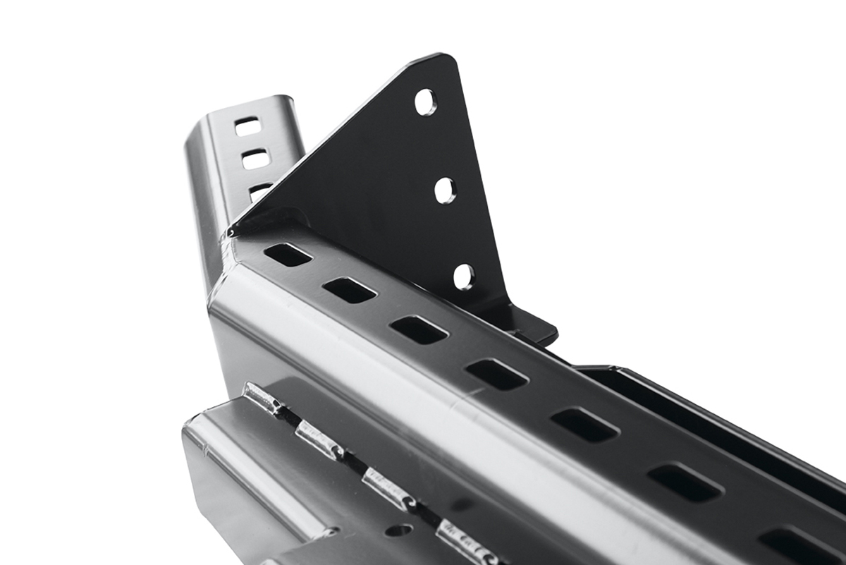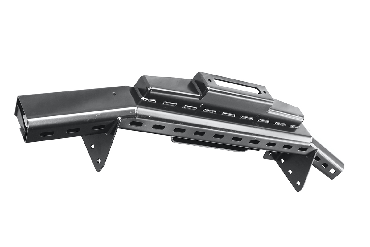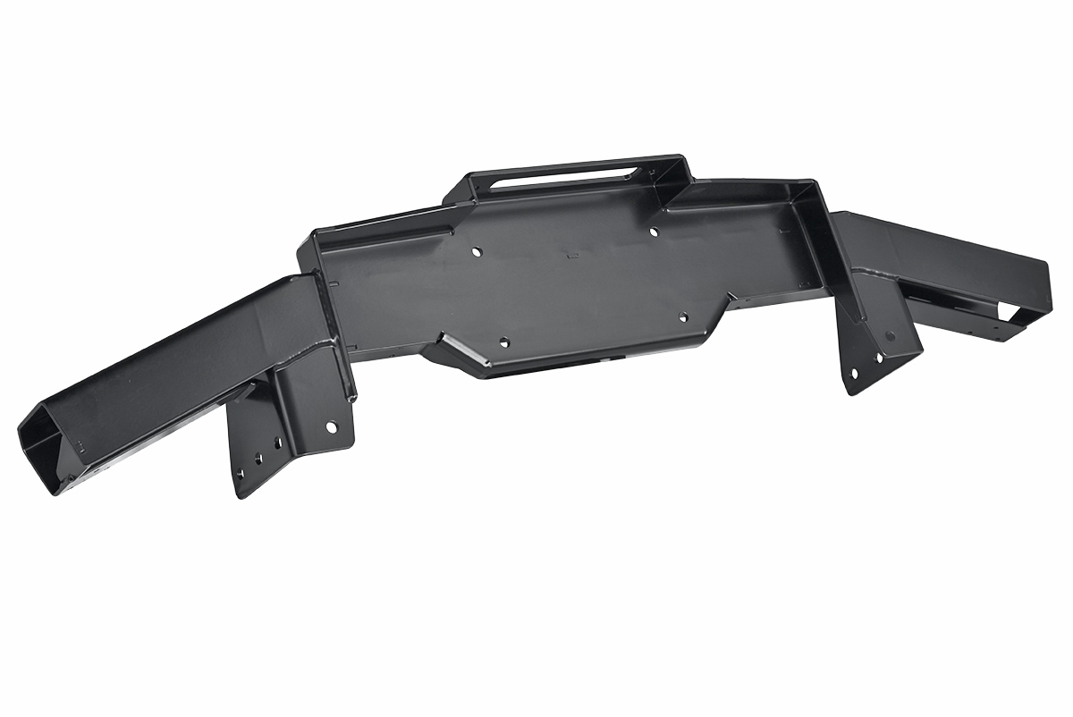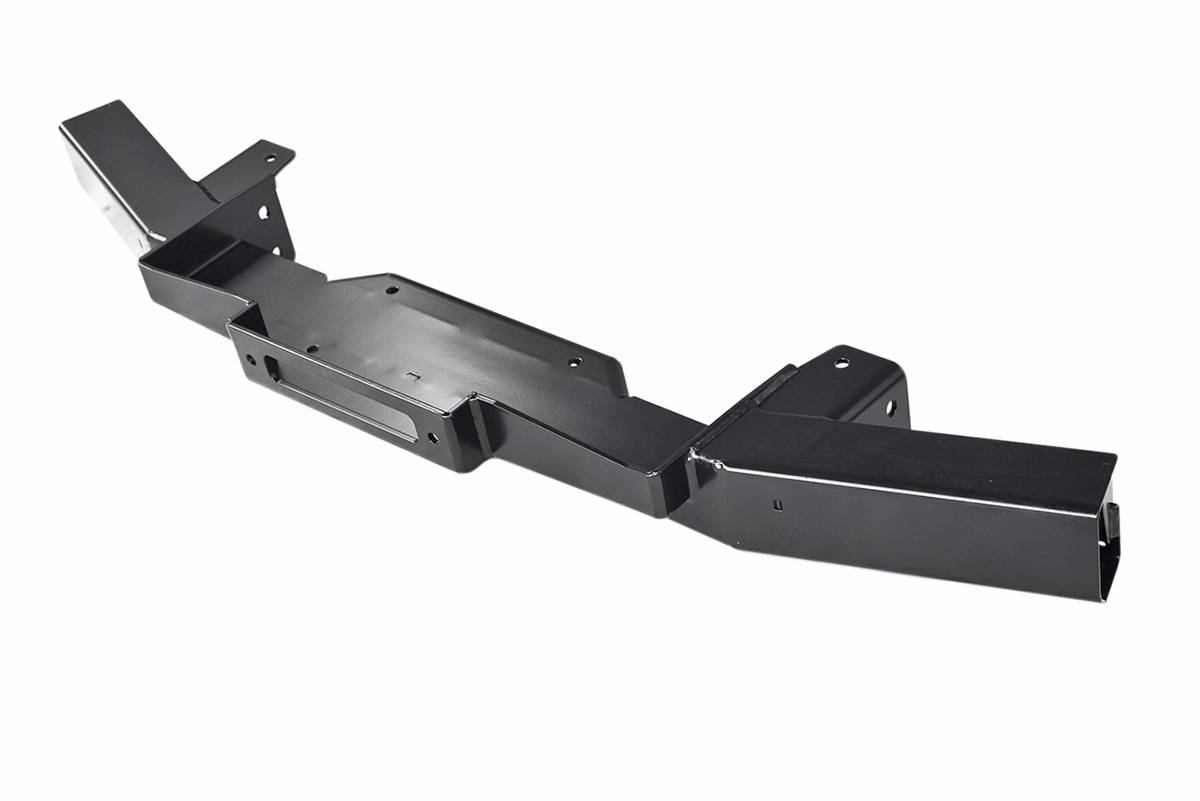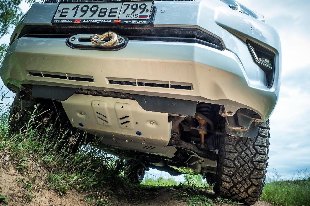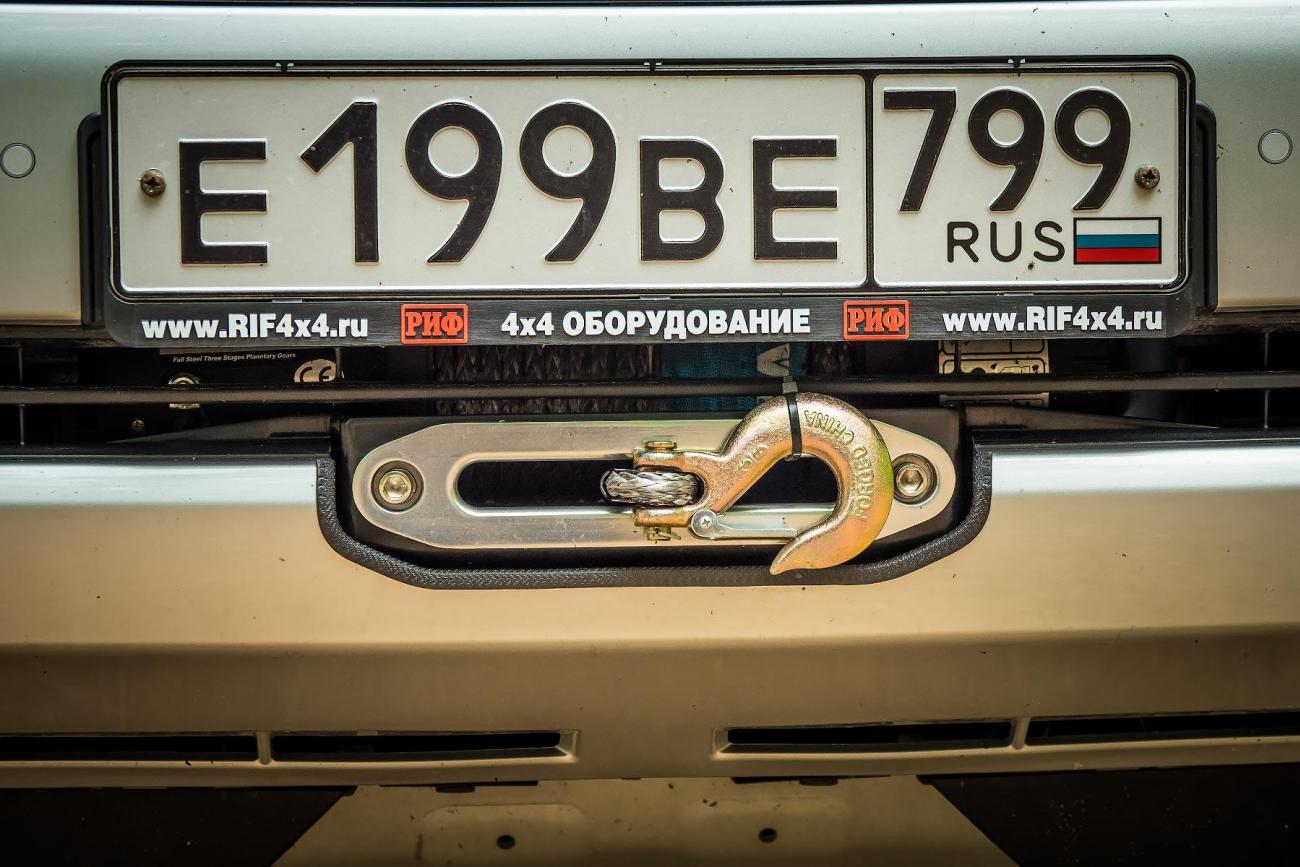 Площадка РИФ под лебедку в штатный бампер Toyota Land Cruiser Prado 150 отличается большим запасом прочности и рассчитана на установку лебедки с тяговым усилием до 5400 кг. Площадка имеет в своей конструкции интегрированный защитный брус, заменяющий штатный, который приходится демонтировать при установке площадки и, таким образом, обеспечивает дополнительную защиту спереди. Площадка устанавливается на раму автомобиля и не требует никаких вмешательств в конструкцию, кроме вырезания в штатном бампере аккуратного отверстия под клюз или ролики для троса.