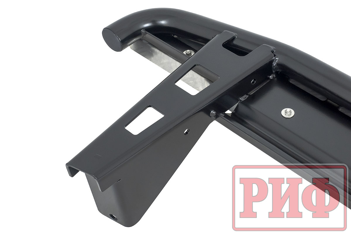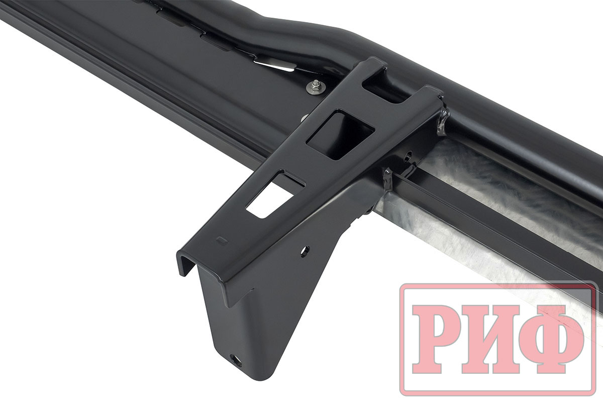 Стандартная окраска силовых порогов РИФ для Toyota Hilux — порошковая, обеспечивающая надежную защиту от коррозии (при отсутствии механических повреждений), цвет — черный.