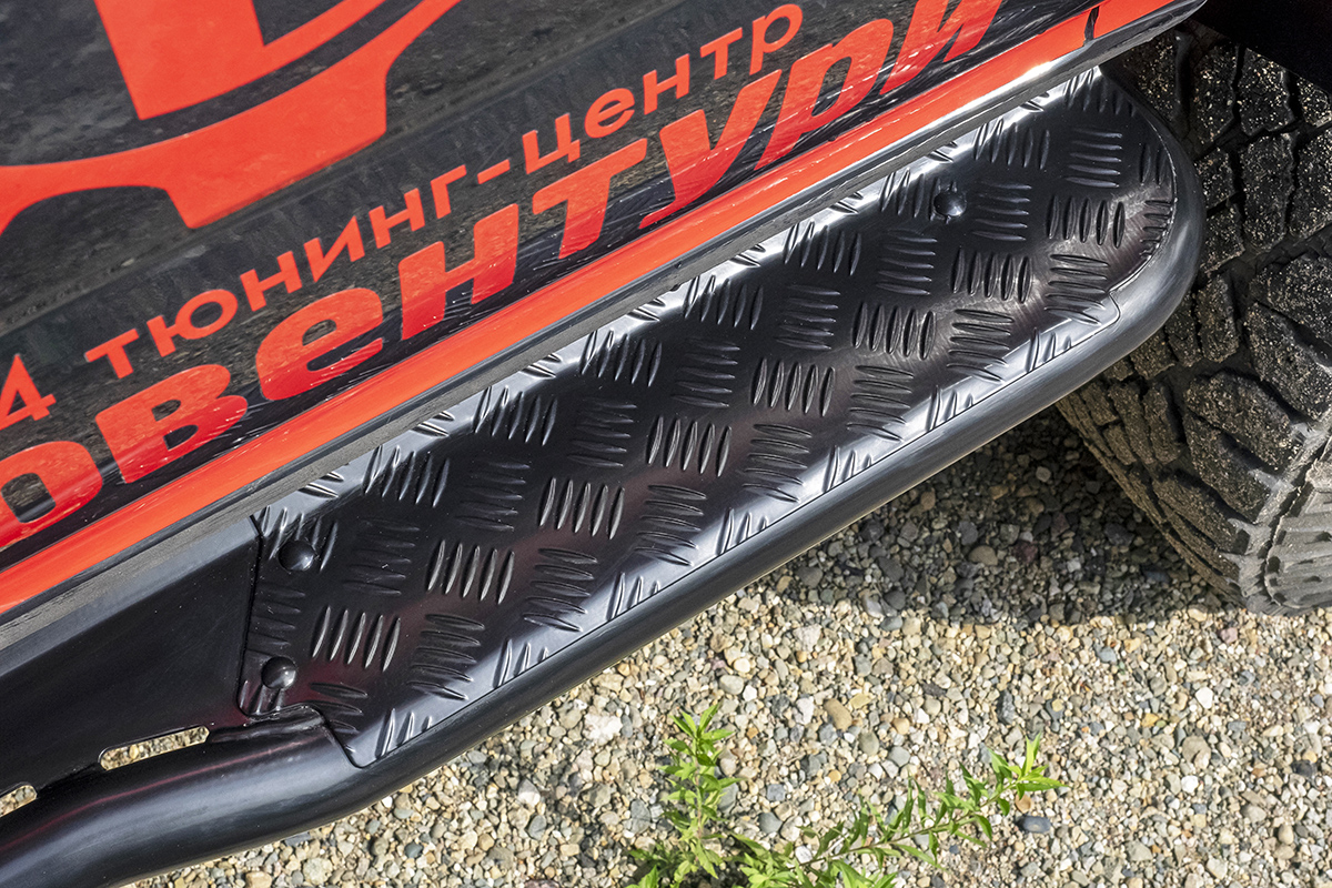 Силовые пороги выполняют несколько функций. Первая, особенно актуальная для владельцев лифтованных автомобилей, — облегчение посадки в салон: автомобиль высокий и запрыгнуть на штатный порог непросто. Вторая — физическая защита нижних боковых частей кузова на бездорожье и в городе, от дураков, например, или сугробов.