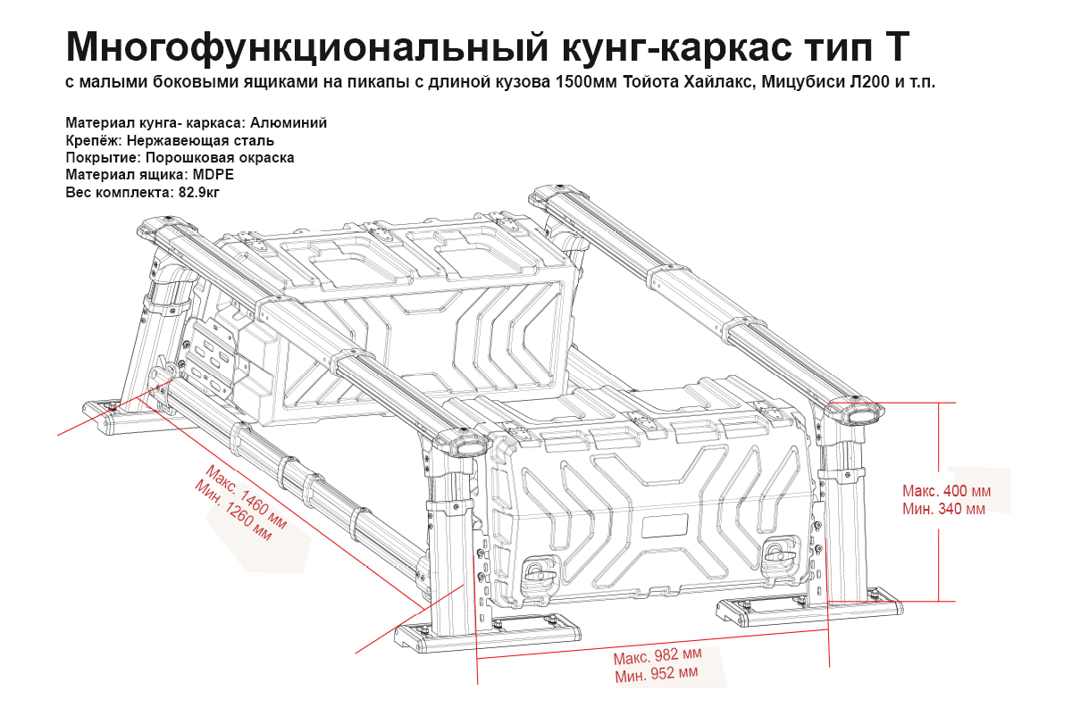 Эта система выходит за рамки обычного кунга, предлагая владельцу богатый набор возможностей для подготовки автомобиля к самым разным условиям эксплуатации. Установка и использование самого разного оборудования, включая туристическое - палатки , маркизы, перевозка грузов, включая длинномеры, становятся намного проще благодаря разным вариантам размещения и быстрому креплению на каркасе.
